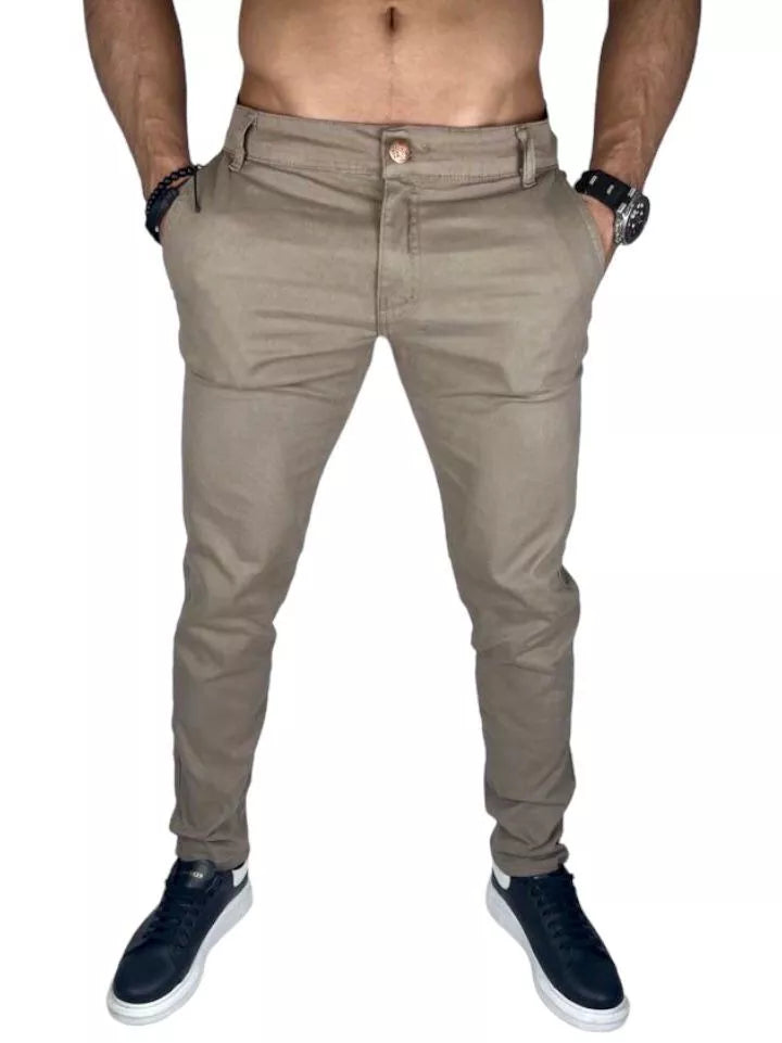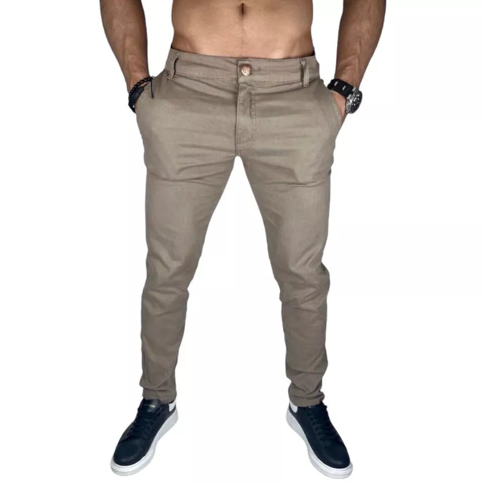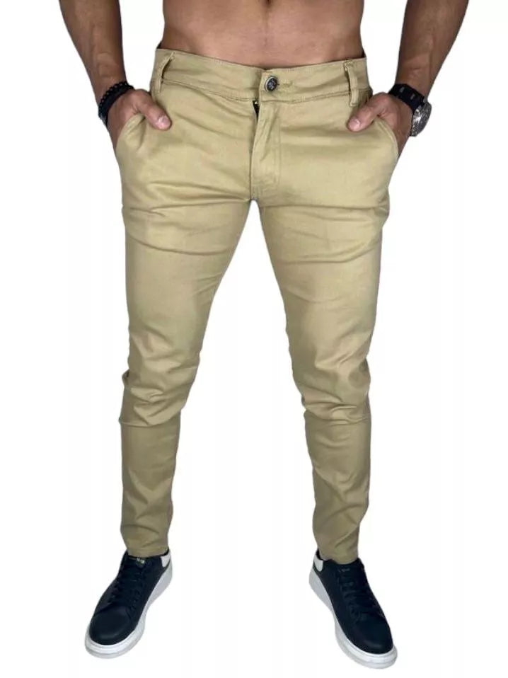Calça de Sarja Brim Masculina com Lycra Elastano Slim Esporte Fino Social Premium